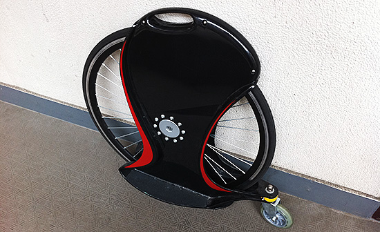 大きな一輪車のようにも見えますが、サドルはなくステップに足をかけて後は勢いをつけてこぐだけです。