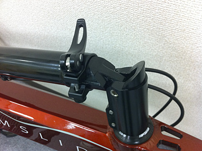 このDreamslide、コンパクトに折りたためるような仕様となっているため、ハンドル部分がおり曲がるようになってるんですが、以前送られてきたDreamslideとロックする部分の仕様が代わってました。