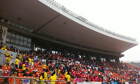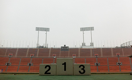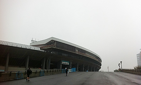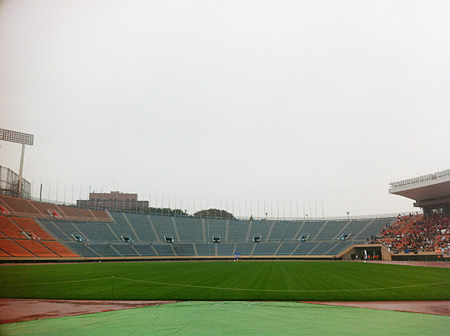 国立競技場に到着。あいにくの天気だったんですが何とか雨は止み、無事に開催されました。