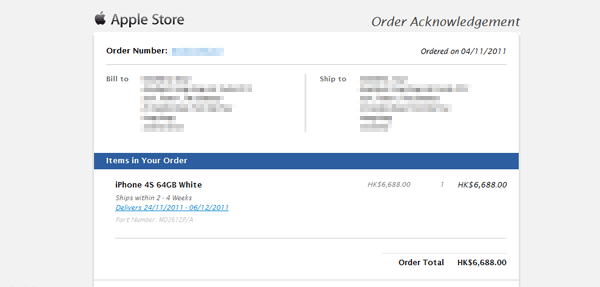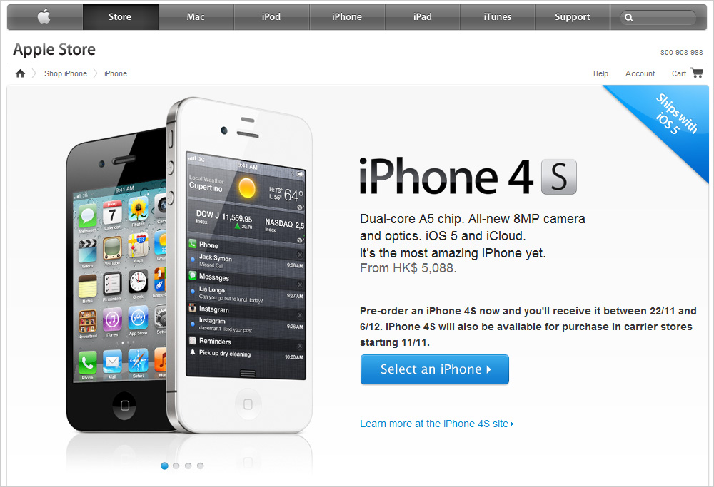 11月11日に発売が決まった香港版iPhone4Sですが本日より予約が開始されました。