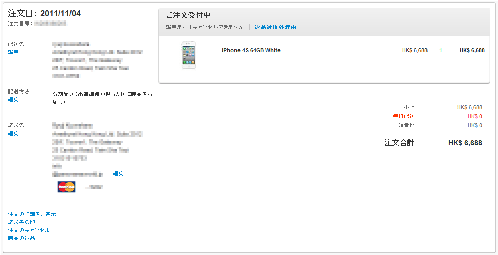 AppleStoreにログインして確認すると、何と無事に注文が入ってました。