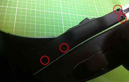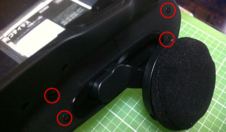まず、本体上部の黒いパーツを取り外すため内側にある4つのねじを外します。