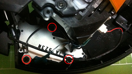 横2本のねじを外すとヘッドホンを根元から取り外すことができます。