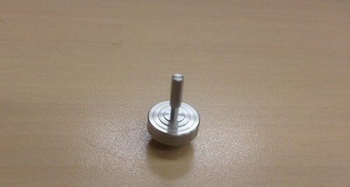 実際のコマ対戦で使用された物は「銅タングステン合金」だったそうですが、発売されてるコマは一回り小さいステンレス製のコマ。