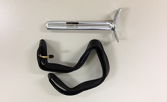 背の低い人のために長さの短い交換用サドルのバーとおそらく室内用のタイヤのチューブが入ってました。