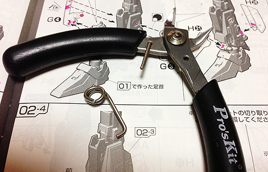 ということで、片足の途中で制作が止まってしまいましたが、明日にでも新しいニッパーを買ってきて続きの作業に入りたいと思います。