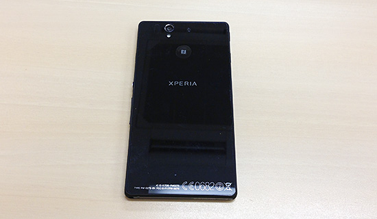 日本版の場合はここにdocomoのロゴが入り、SONYのロゴは本体下部に印刷されているため、せっかくのデザインが台無しなしです。