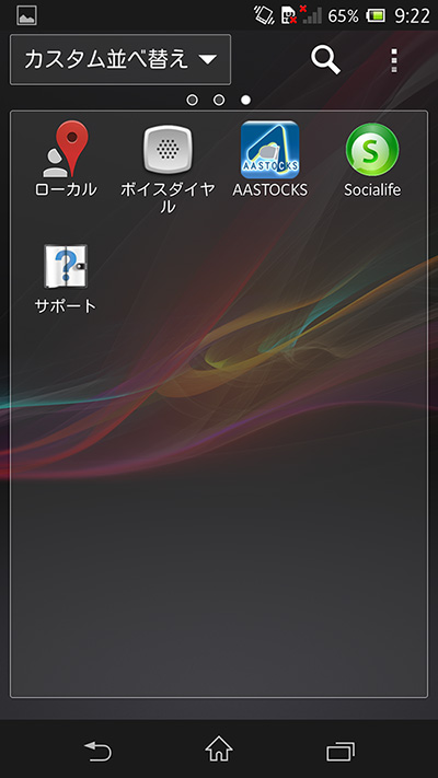 こちらが、香港版Xperia Zにプリインストールされているアプリ一覧。