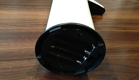 本体裏には電池を収納できるスペースがあり、単四電池4本を別途用意する必要があります。