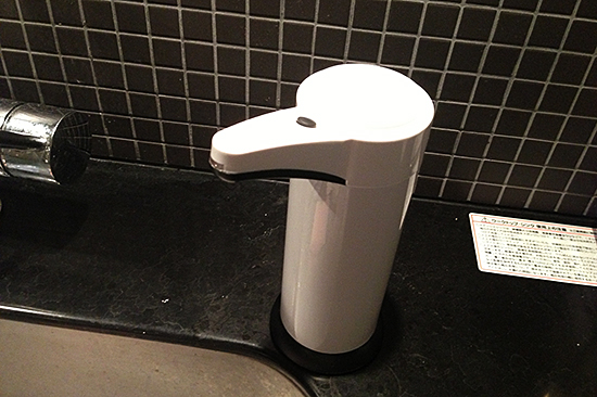 液体が出る口の横にセンサーがついていて、ここが反応すると液体が出る仕組み。