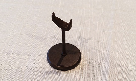 手のひらの足の部分に穴が空いていて、そこに台座の出っ張りを差し込むようになってます。