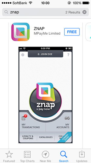 さっそくZNAPをダウンロードしてみようと思うのですが、日本のAppStoreにはまだ登録されていないため、当然ダウンロードできません。