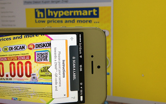 そこで、先日サービスを開始した、ジャカルタのスーパーマーケットhypermartのHPにあるZNAP用のQRコードを読んでみることに。