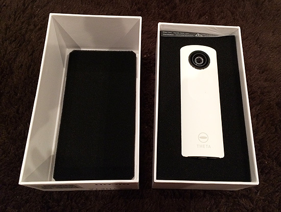 箱は二段になっていて上段に「THETA」が、下段に付属品が入っています。