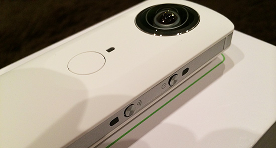 本体の正面にシャッターボタンがあり、押すことでそのまま360度のパノラマ写真が撮影できます。