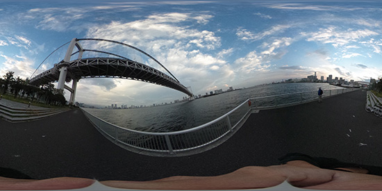 撮影画像ですが、1792×3584ピクセル(正距円筒)のjpg画像で保存されるので、画像を加工したり、画像だけ取り出してほかのパノラマソフトで使うことも簡単にできます。