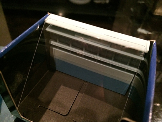 ハコを開けるとプロジェクションマッピング用の背景フィギュアとクリアプレート、そして食玩ということでガムが入っています。