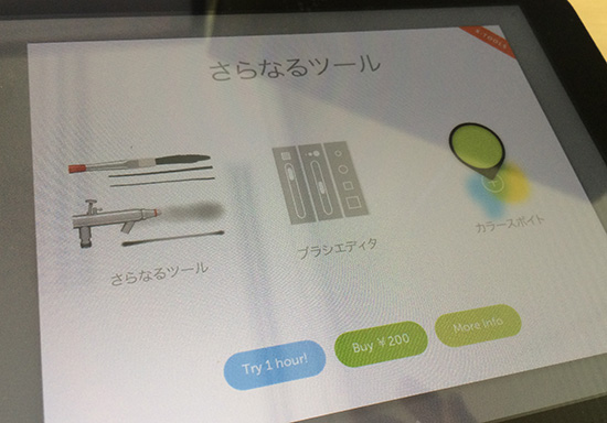 このアプリ、筆の幅など変更したい場合は別途ツールを購入する必要があるとのこと、、
