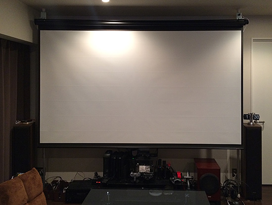 こちらが今までスチールラックに取り付けてた120インチの電動スクリーン。