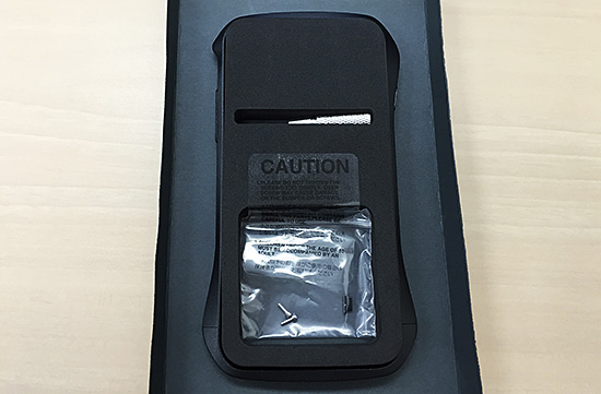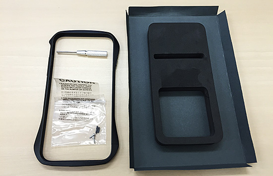 取付けは簡単で、下部の左右にあるネジを外しパーツを分離させ、iPhoneを差し込み、再度ネジをしめるだけ。