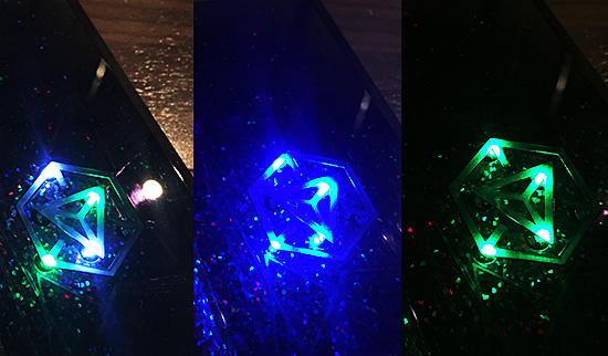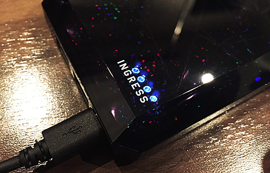 本体にはIngressのロゴが入っており、本体の電源を入れることで青や緑に光ります。