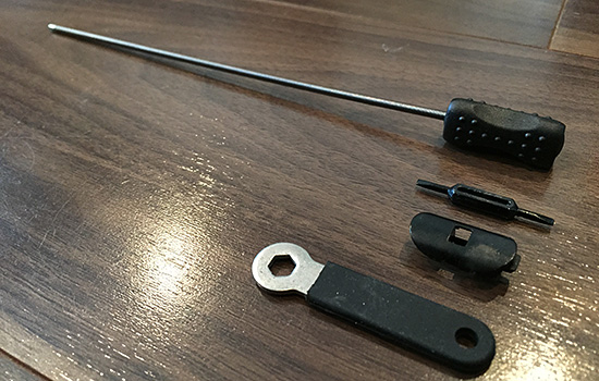 右からクリーニングツール、ミニスクリュードライバー、予備カバー、ノイズ取り外し用ツールとなっています。