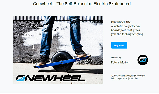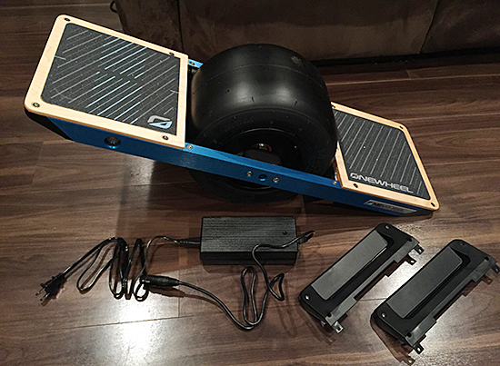 ジャイロセンサーを搭載した電動一輪スケートボード「Onewheel」がようやく到着しました。