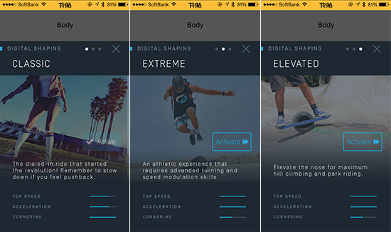 このOnewheelですが、本体をスマホのアプリ側から管理することができ、バッテリーの残量や、スピードなどコントロールすることができます。