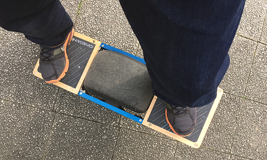 動かし方は簡単で、ボードに乗って傾けるだけでOK。傾いた方へ進む仕組みになっています。
