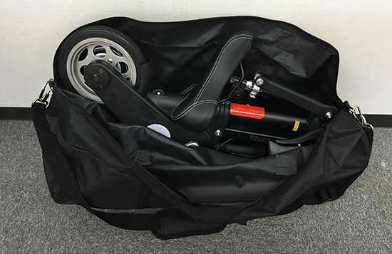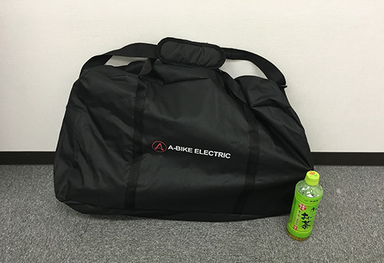 十分持ち運びができるサイズ。この中に電動アシスト自転車が入ってるかと思うと凄いですね。