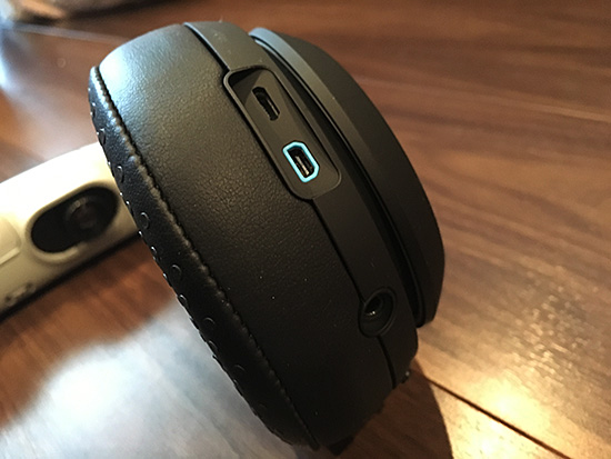 ヘッドホン側面には上下左右4つのボタンが付いており、ここを押すことで音量の調整などができる仕組み。