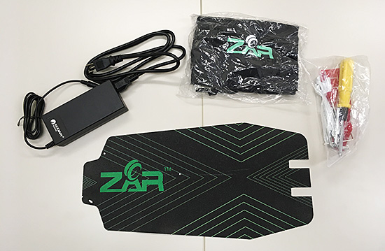 付属品は充電用アダプター、交換用のフットシート、修理用の工具、持ち運び用のバック。