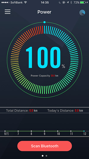 バッテリーの残量ですが本体とスマホをBluetoothでつなぐことが可能で、専用のアプリでいつでも確認することができます。