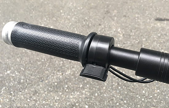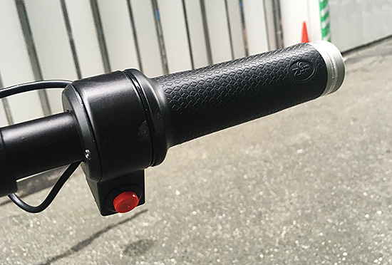 最初グリップを回しても動かなくて不具合かと思ったのですが、これは安全性を考慮したもので、ある程度スピードが出てないと動かない仕組みのようで、最初だけちょっと蹴りだす必要があります。