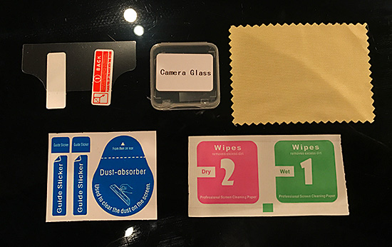 いろいろと入ってる感じですが、フィルム以外は保護フィルムを貼るために使うシールやクロスなど。