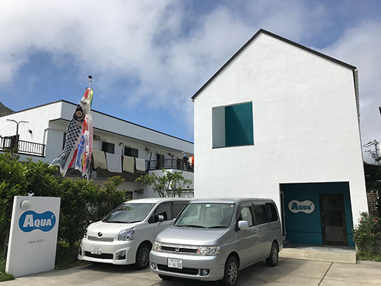 今回お世話になる宿「AQUA」さんが迎えに来てくれており、まずは車で宿に向かいます。