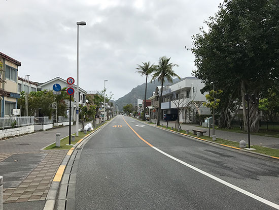 島のメインストリートとなっており、目の前に大村海岸があります。