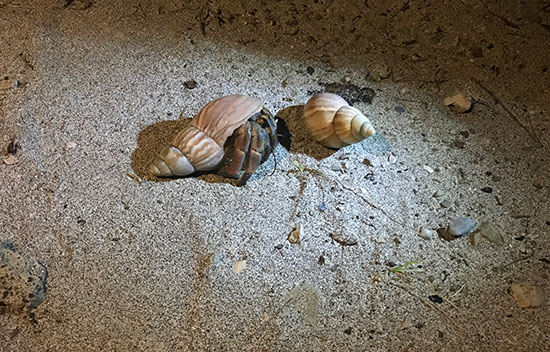 ツアーは光るきのこ「グリーンぺぺ」や天然記念物の「オガサワラオオコウモリ」、海岸の夜行性生物「スナガニ」「天然記念物オカヤドカリ」「夜光虫」などを探すツアー