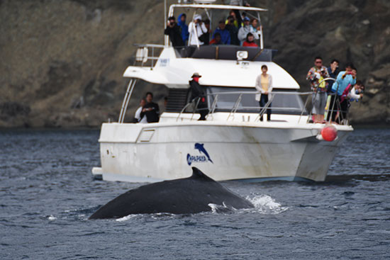このイルカ・クジラツアー、さまざまなところで行われているのですが、今回は小笠原観光有限会社が行っている「イルカ・クジラ南島ツアー」に参加しました。