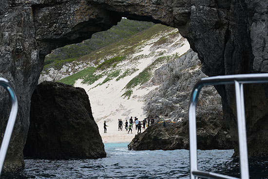 ホエールウォッチングの後は南島に向かったのですが、波が高いということで残念ながら今回は上陸できませんでした。