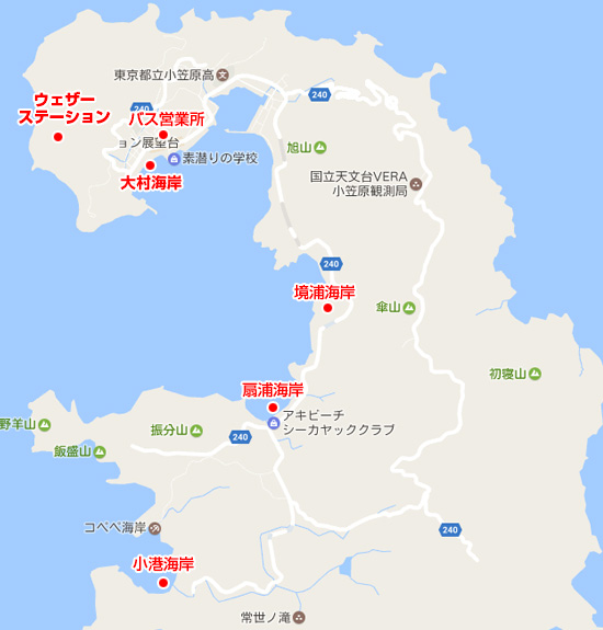 父島のメインストリートとなる大村地区のすぐ目の前に広がっており、すぐに泳ぐことができます。