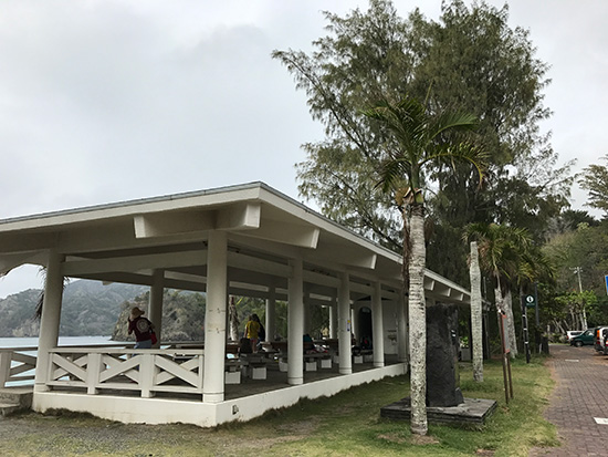 今回の宿「AQUA」から徒歩2分ほどでいける場所で、向こうの方にはおがさわら丸も見えます。