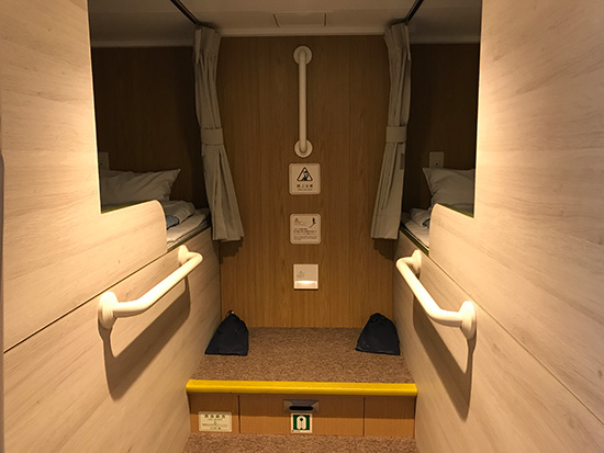 2等寝台のときは通路から覗き込めるようになっていたのですが、得2等寝台以上はドアがあり、中が覗き込めないようになっています。