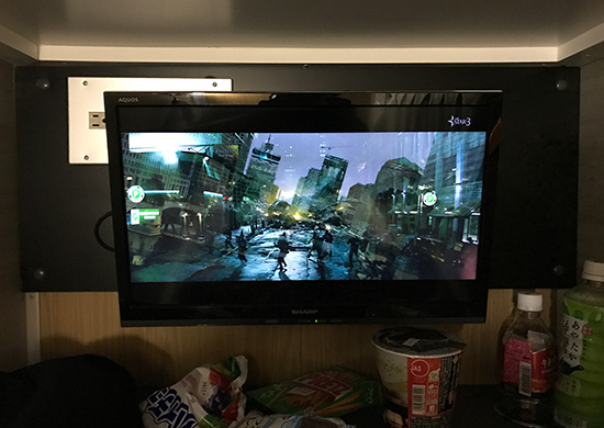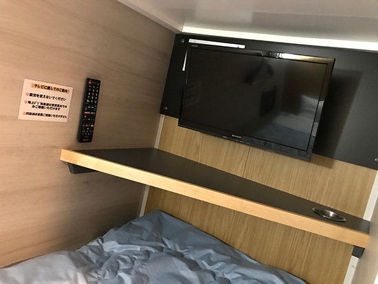 このTVですが、衛星放送など見ることができ、音は耳元の壁にイヤホンジャックがあるので、無料でもらえるイヤホンをそこに差込聞くことができます。